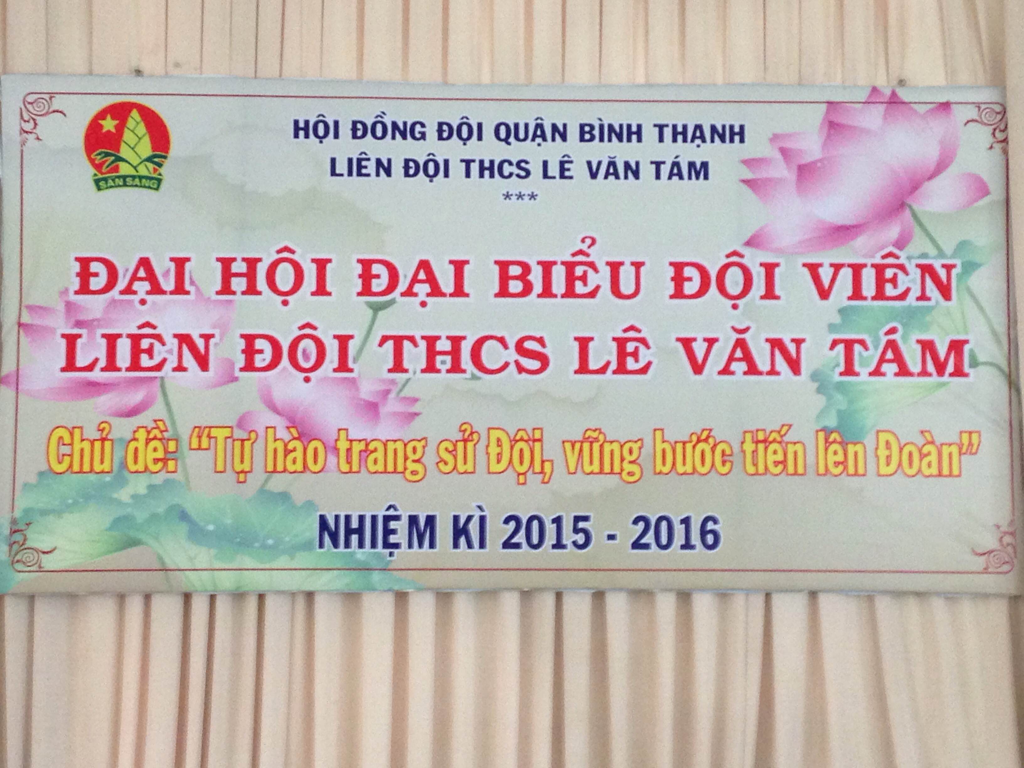Thực hiện chương trình công tác Đội và phong trào thiếu nhi quận Bình Thạnh, Liên đội THCS Lê Văn Tám tổ chức Đại hội đại biểu đội viên Liên đội nhiệm kì 2015 – 2016 với chủ đề “Tự hào trang sử Đội, vững bước tiến lên Đoàn” nhằm đánh giá, tổng kết hoạt động Liên đội trong nhiệm kì 2014 – 2015 và xây dựng phương hướng cho nhiệm kì 2015 – 2016; Đại hội cũng nhằm bầu chọn Ban chỉ huy Liên đội nhiệm kì 2015 – 2016 với 17 đội viên với đầy đủ tiêu chuẩn, năng động, yêu thích, tích cực tham gia các phong trào:
