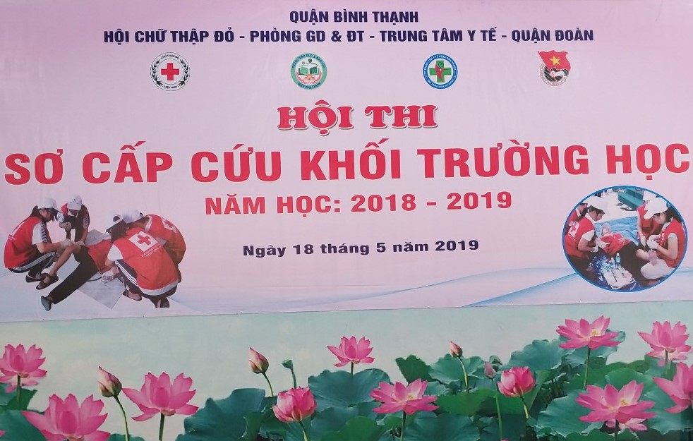 Sáng 18/5/2019, Hội Chữ thập đỏ Quận Bình Thạnh phối hợp với Phòng Giáo dục và Đào tạo quận và Quận Đoàn tổ chức hội thi Sơ cấp cứu khối trường học năm học 2018 – 2019, với sự tham gia của gần 150 hội viên thuộc 23 đội đến từ các trường tiểu học, mầm non, THCS trên địa bàn Quận Bình Thạnh.