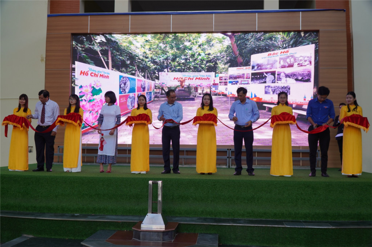 Không gian văn hóa Hồ Chí Minh tại khu vực tượng đài Lê Văn Tám đã tái hiện các hình ảnh thể hiện cuộc đời, sự nghiệp, tư tưởng, đạo đức, phong cách Hồ Chí Minh với điểm nhấn là 05 cột trụ xoay tương ứng với các chủ điểm là: mối quan tâm, tình yêu thương của Bác dành cho giáo dục; Cách thức mà cán bộ - GV – CNV và các em học sinh nhà trường vận dụng để lan tỏa việc học tập và làm theo tư tưởng, đạo đức, phong cách Hồ Chí Minh trong thực tế giáo dục của nhà trường; Khu vực dọc 02 bên đường là những tác phẩm, những lời căn dặn của Bác đối với ngành Giáo dục.