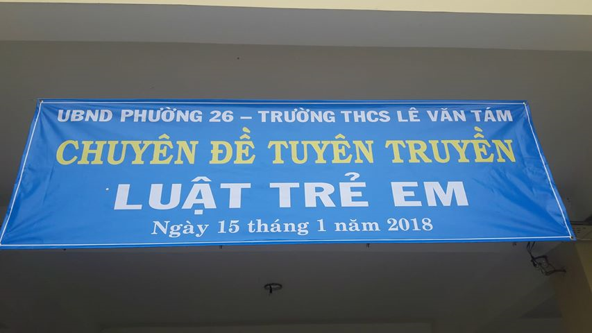 Sáng thứ 2, ngày 15 tháng 1 năm 2018, trong buổi lễ chào cờ đầu tuần, THCS Lê Văn Tám với sự hỗ trợ của Hội Luật gia phường 26 đã tổ chức thành công buổi Tuyên truyền pháp luật về "Luật trẻ em". Toàn thể GV-CBCNV và Học sinh nhà trường đều chăm chú lắng nghe những điều mới trong bộ luật để có thể hiểu đúng và áp dụng và bản thân. Theo đó, quyền và bổn phận của trẻ em được quy định như sau: