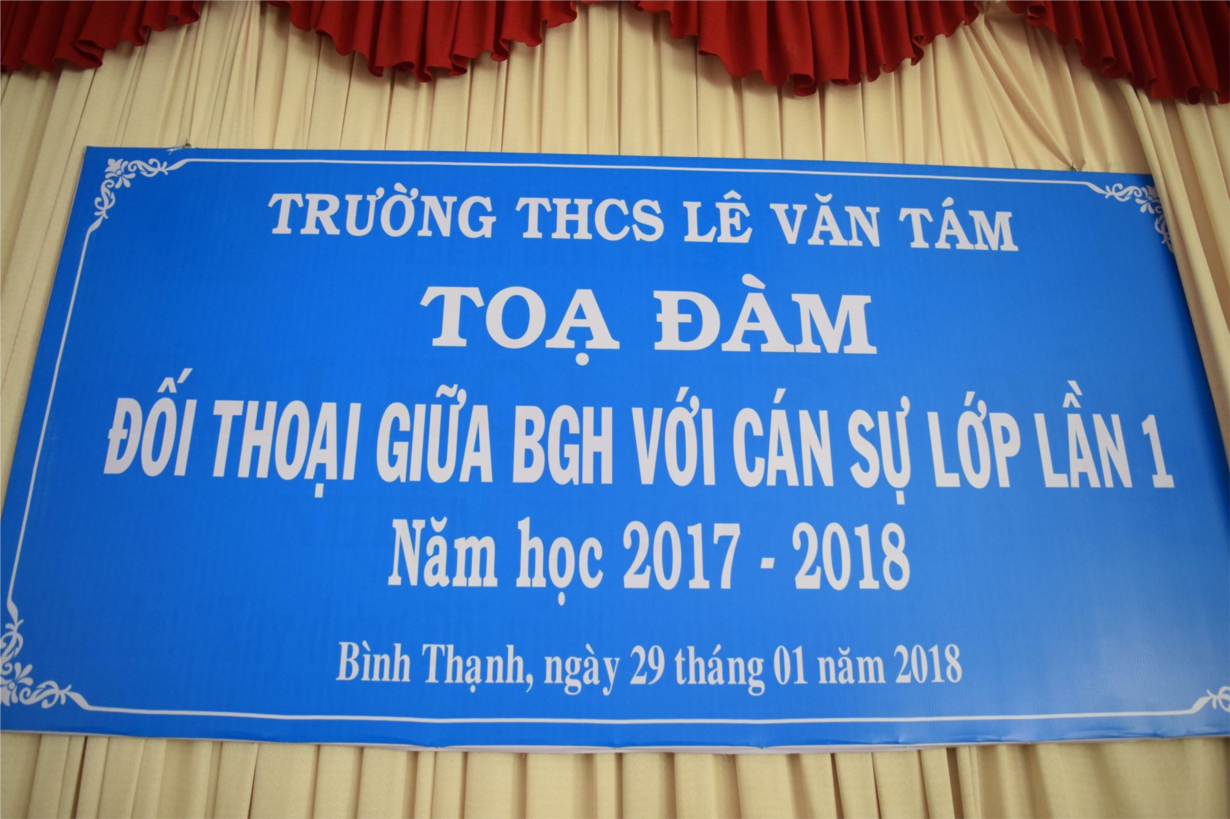 Sáng thứ 2 ngày 29/01/2017, trường THCS Lê Văn Tám đã tổ chức buổi gặp gỡ đối thoại giữa Nhà trường và các em học sinh. Đây là hoạt động thường xuyên, là một kênh thông tin hữu ích để nhà trường lắng nghe HS giãi bày, chia sẻ… nhằm nắm bắt tâm tư, tình cảm, ước muốn của các em; đồng thời cũng là dịp để nhà trường giải thích, trình bày cho các em rõ những việc liên quan đến dạy - học và giáo dục trong nhà trường.