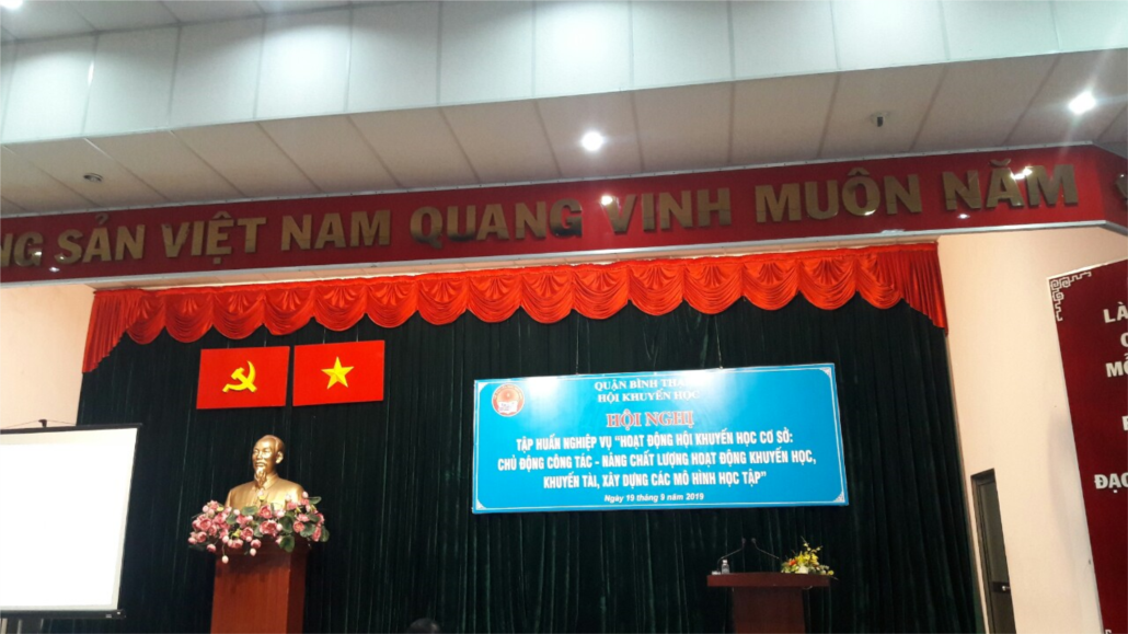 Ngày 19 tháng 9 năm 2019, lúc 8h00 tại hội trường A quận ủy, Hội khuyến học quận Bình Thạnh tổ chức hội nghị tập huấn nghiệp vụ "Hoạt động hội khuyến học cơ sở": chủ động công tác - nâng chất lượng hoạt động khuyến học, khuyến tài, xây dựng các mô hình học tập"