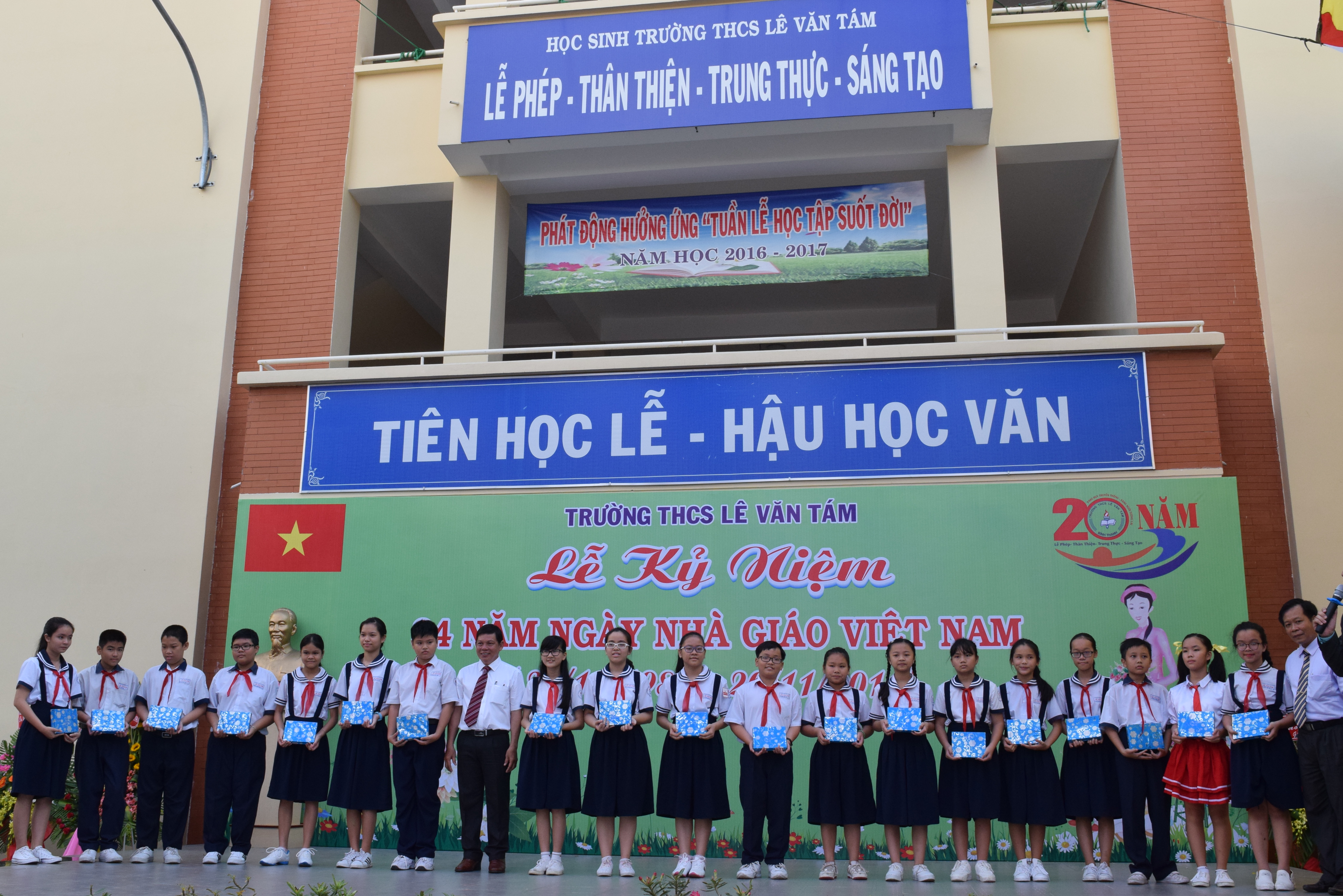 Để chào mừng 34 năm ngày Nhà giáo Việt Nam (20/11/1982 – 20/11/2016) trường THCS Lê Văn Tám tổ chức rất nhiều các phong trào, hội thi thiết thực, trong đó nổi bật là cuộc thi “Hoa điểm mười”. Cuộc thi này là cơ hội để các em học sinh thể hiện lòng biết ơn sâu sắc của mình đối với quý thầy cô thông qua việc cố gắng học tập thật tốt, phấn đấu đạt thật nhiều những bông hoa điểm 10.